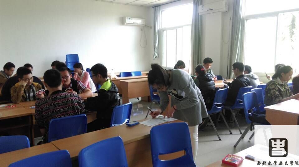 421日下午两点三十分,经过紧锣密鼓的准备,776net必赢官网学生会组织部于院楼420教室成功的举办了UNO纸牌友谊交流赛。UNO纸牌是一个集智慧与运气于一身的休闲牌类,有着很高的娱乐性和竞技性,近年来深受中国青年群体的喜爱。为了丰富同学们的课余生活,活跃大家的气氛,不占用大家学习的时间,我们选择了星期六这个恰当的时机举行友谊交流赛。