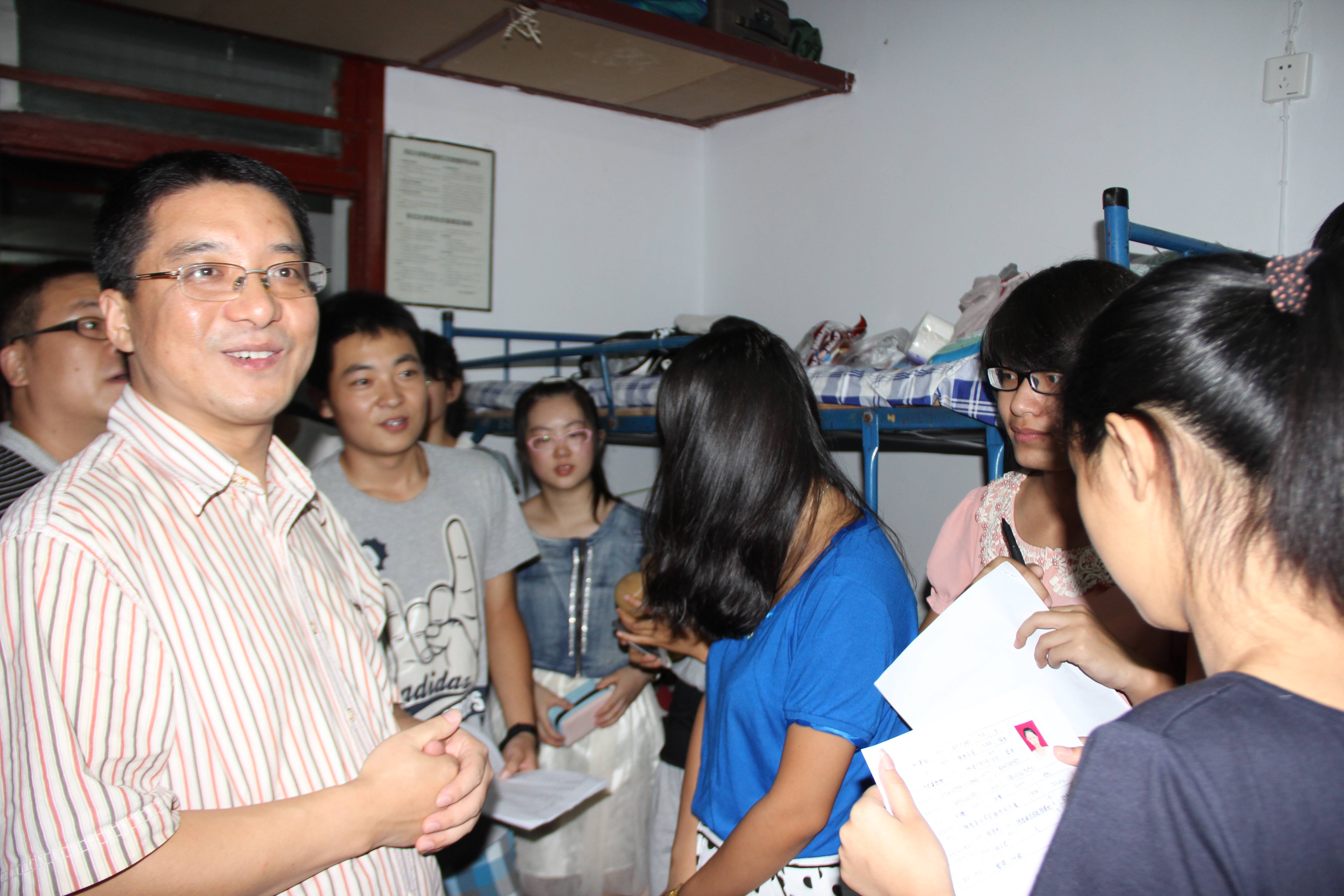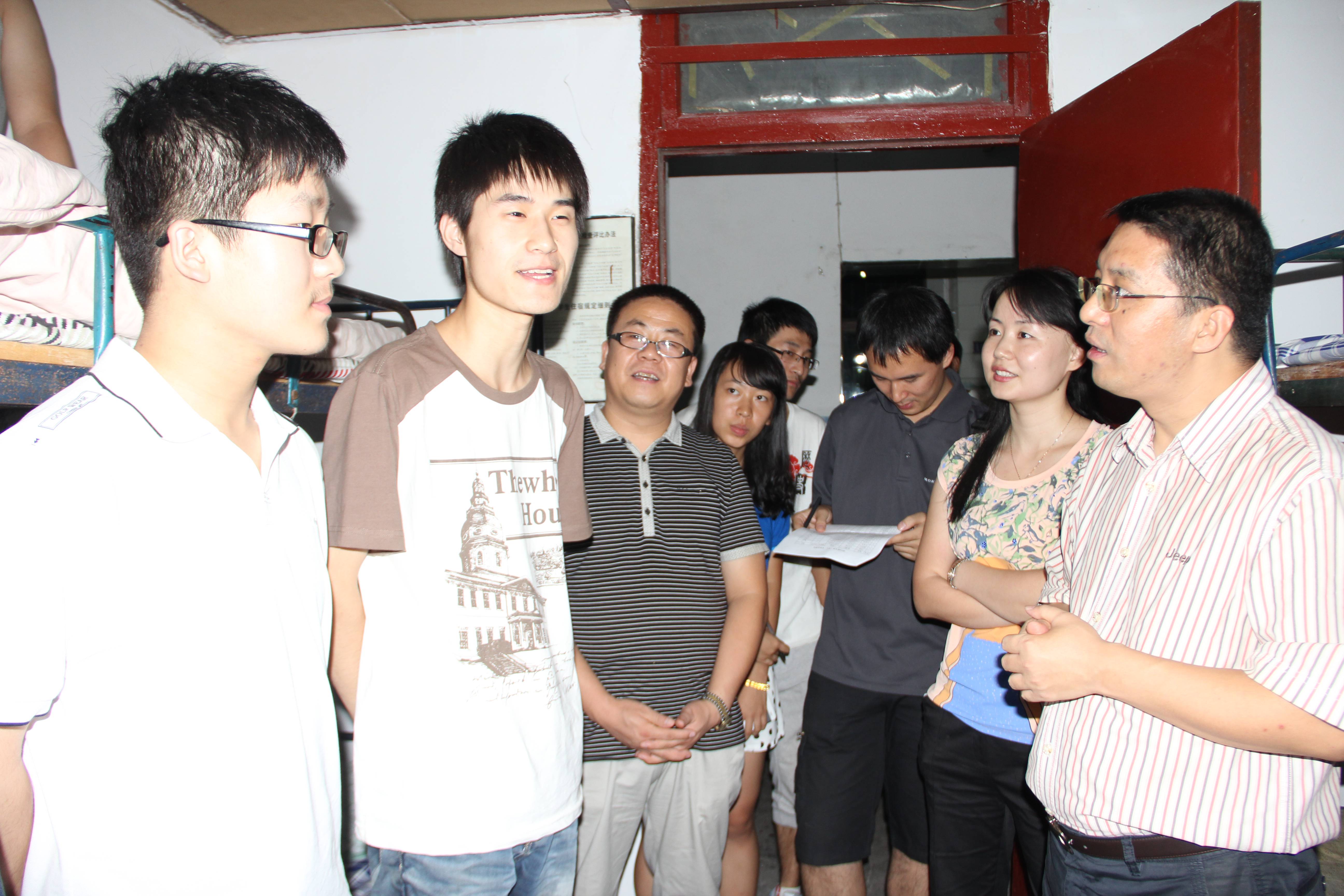 93日,776net必赢官网迎来了2013级全体新生,并顺利完成所有报到手续。晚上7点,我院党总支书记李国良老师,副院长李长宏老师,团委于欣荣老师和薛原老师以及776net必赢官网学生会全体成员到新生宿舍一一慰问, 帮助大家解决疑惑,更快的适应大学生活。