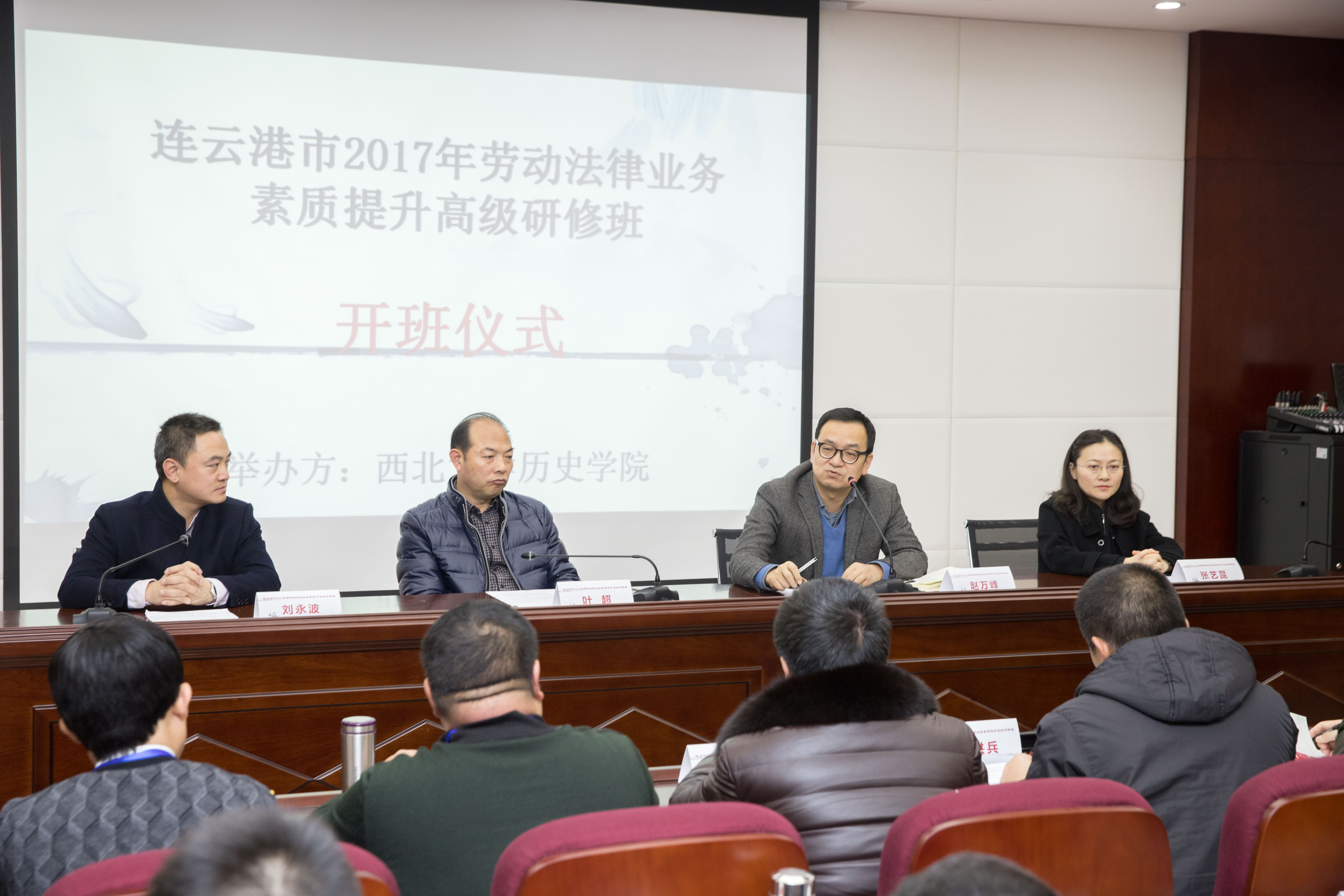 1218日上午,由连云港市人社局与我校776net必赢官网共同举办的“连云港市2017年劳动法律业务素质提升”高级研修班在我校太白校区开班。与会人员由连云港市人力资源和社会保障局、劳动人事争议仲裁院和监察大队以及我校776net必赢官网负责人构成,江苏连云港市社局和下辖各级政府单位的30余名参训领导干部参加开班仪式。